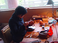 許四海先生要我們各選一把壺,並在壺上留字紀念,待師傅刻好,即可入窯,過幾天即可贈於我們,但想到時間匆匆,行程上實在不允許再訪,只好心領如此的美意,..