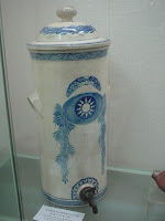 在看展的過程中,我對一只製於1925年,紫砂掛白釉上繪有國民黨黨徽的『國民黨南京總統府青天白日壺』,很感興趣,許先生看我看得入神,特別解釋說,這件東西是歷史遺物,不久前一位台灣來的國民黨部朋友看了想買回去,他沒答應,..
